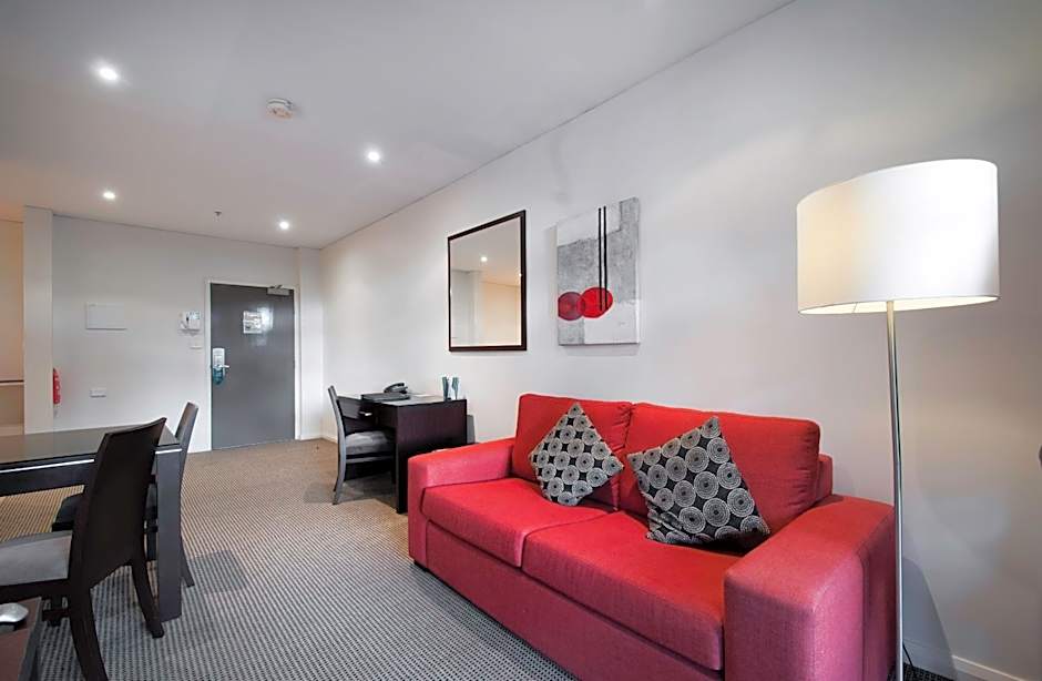 Fully self-contained apartment with kitchen and laundry facilities, spacious lounge area with work desk, large balcony and a separate bedroom.